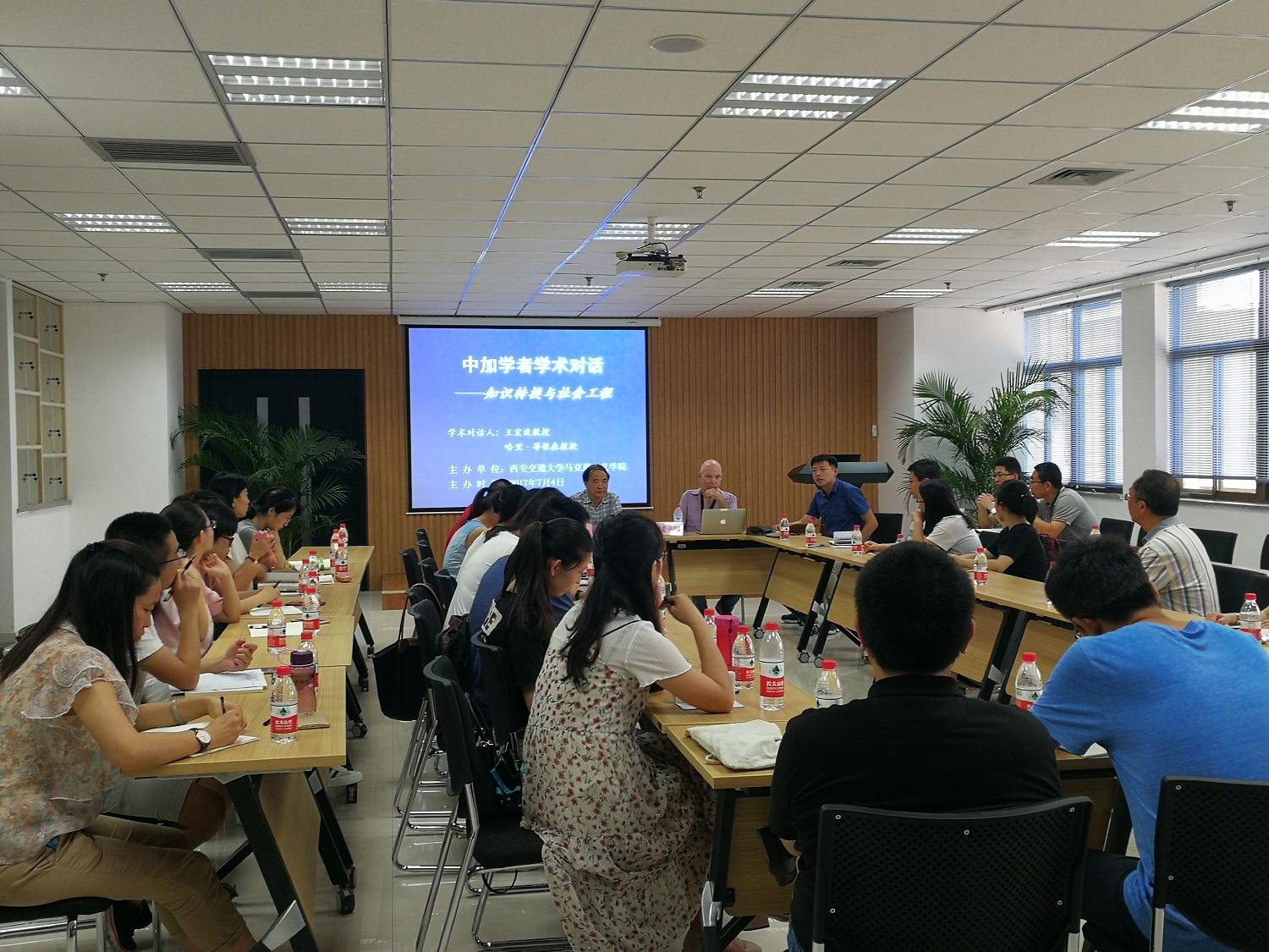 王宏波教授就哈里∙蒂根森教授的学术观点进行了回应,阐述了在社会工程研究中的知识转换问题。王宏波教授阐述了社会工程是探索、规划和设计社会发展模式、制度体系和政策体系过程的观点,重点阐述了理论命题转化成操作性命题的过程特点,以及命题转化与知识转换过程的问题,并分析了社会工程的研究对社会政策设计、社会模式建构的意义和作用。王宏波教授还阐述了社会政策设计和社会工程活动的基本维度和约束条件是价值、规律和情境,社会工程的基本目的是创设、催生、发展新的社会组织和社会运作模式等观点。哈里∙蒂根森教授还以孔子学院在加拿大的建立发展及其国际化推广为例,分析了社会工程与知识转换、共识形成的关系问题。